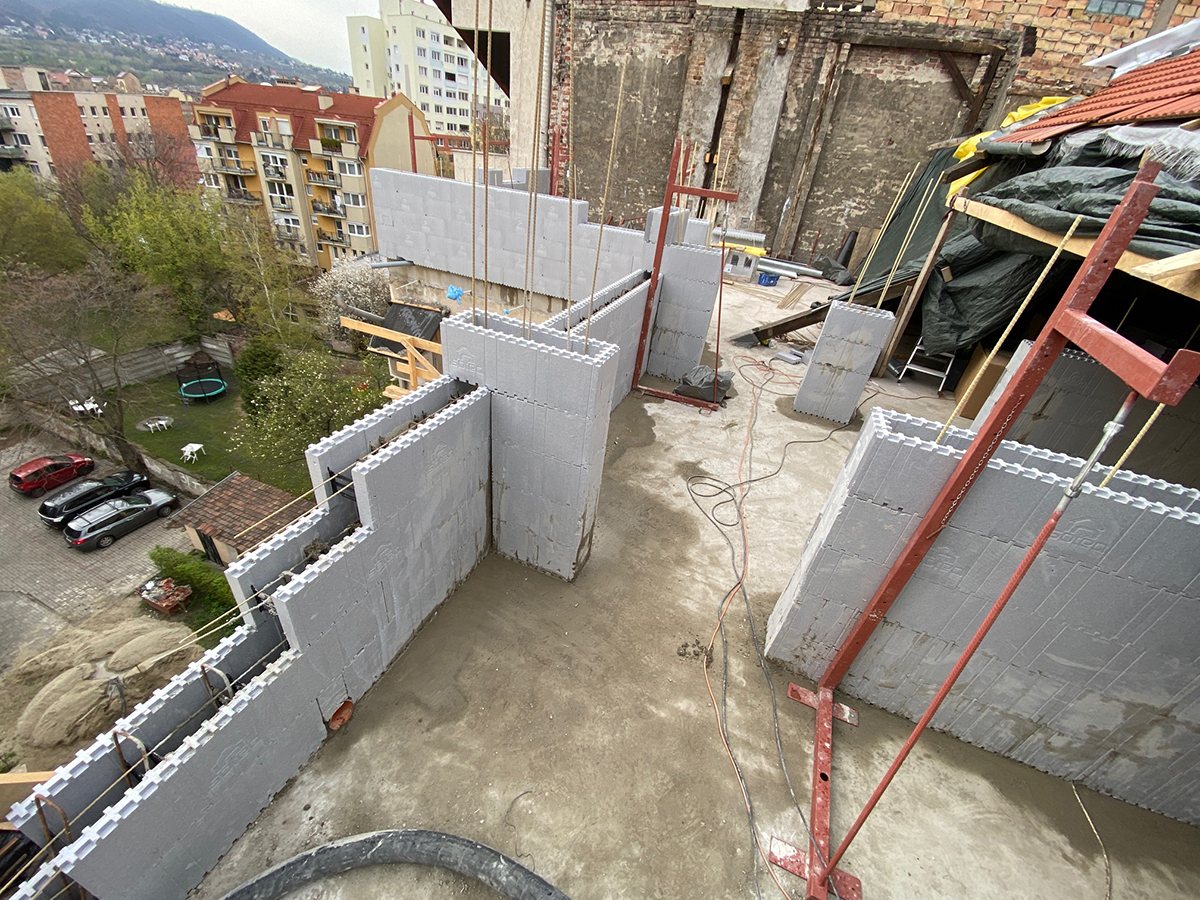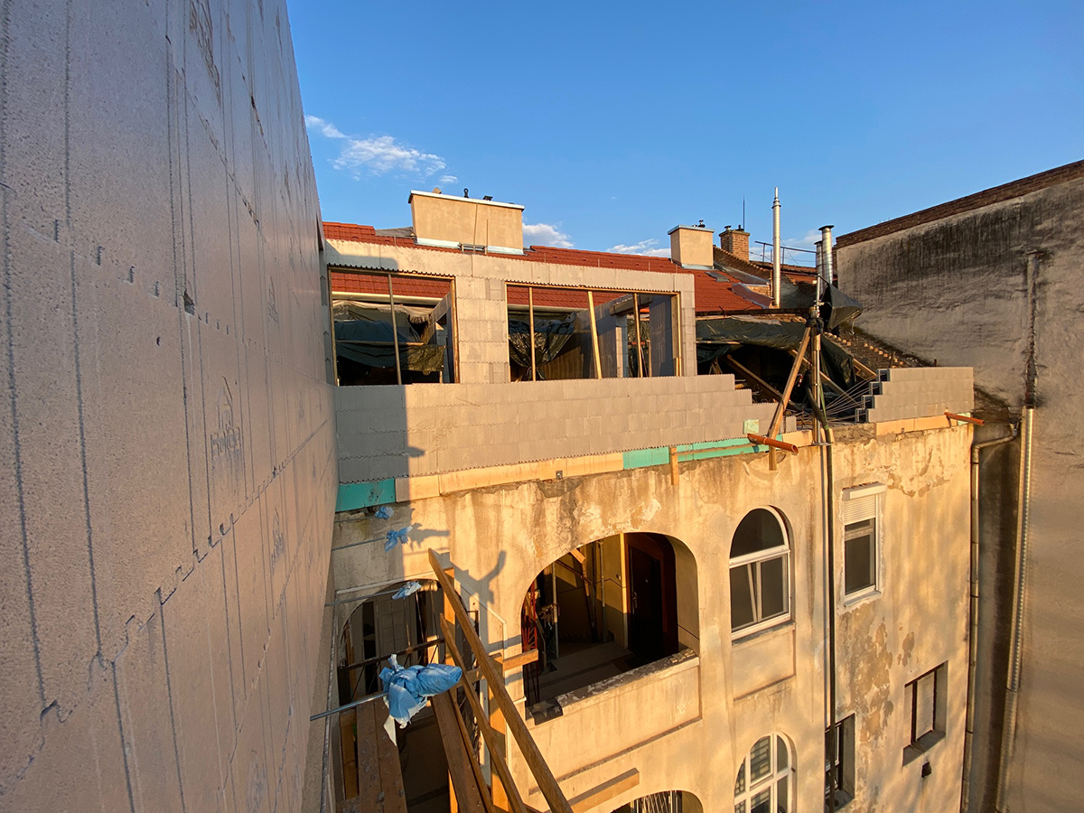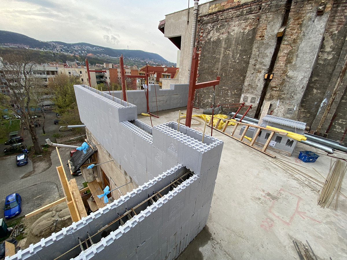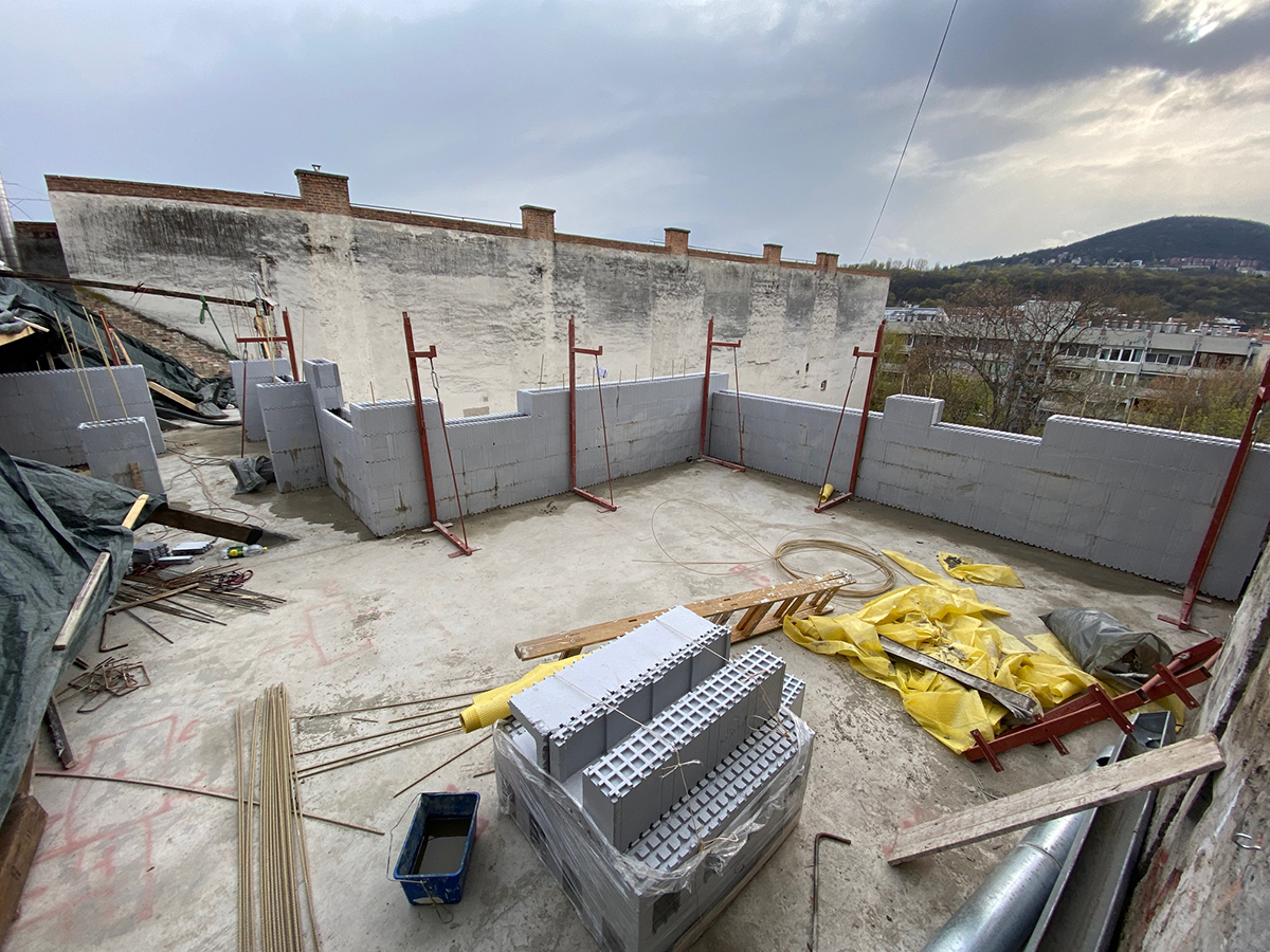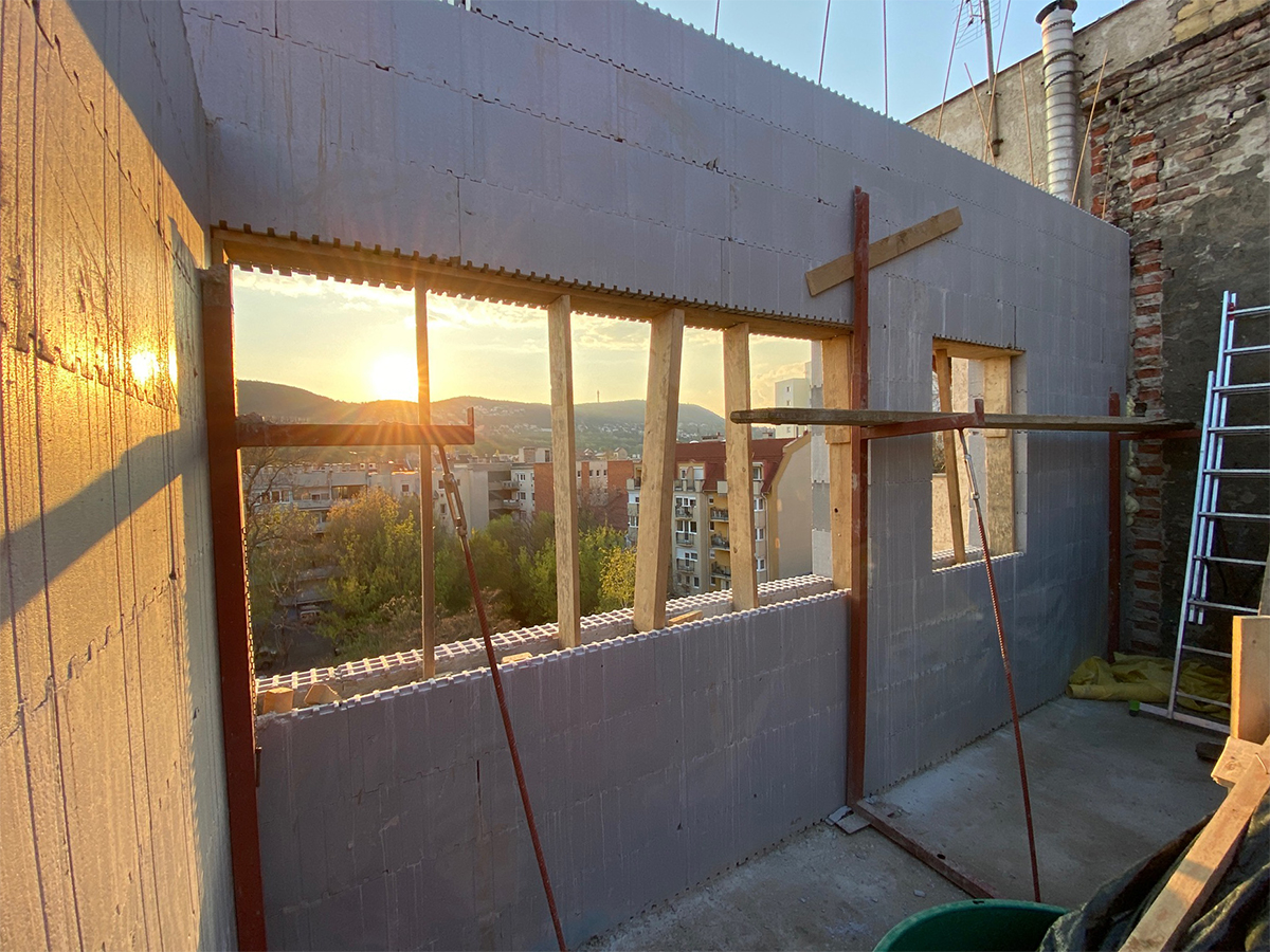 Place of construction: III. district of Budapest, Hungary Type of building: Attic expansion Last updated: 27.04.2021. Current status: Wall construction Photos