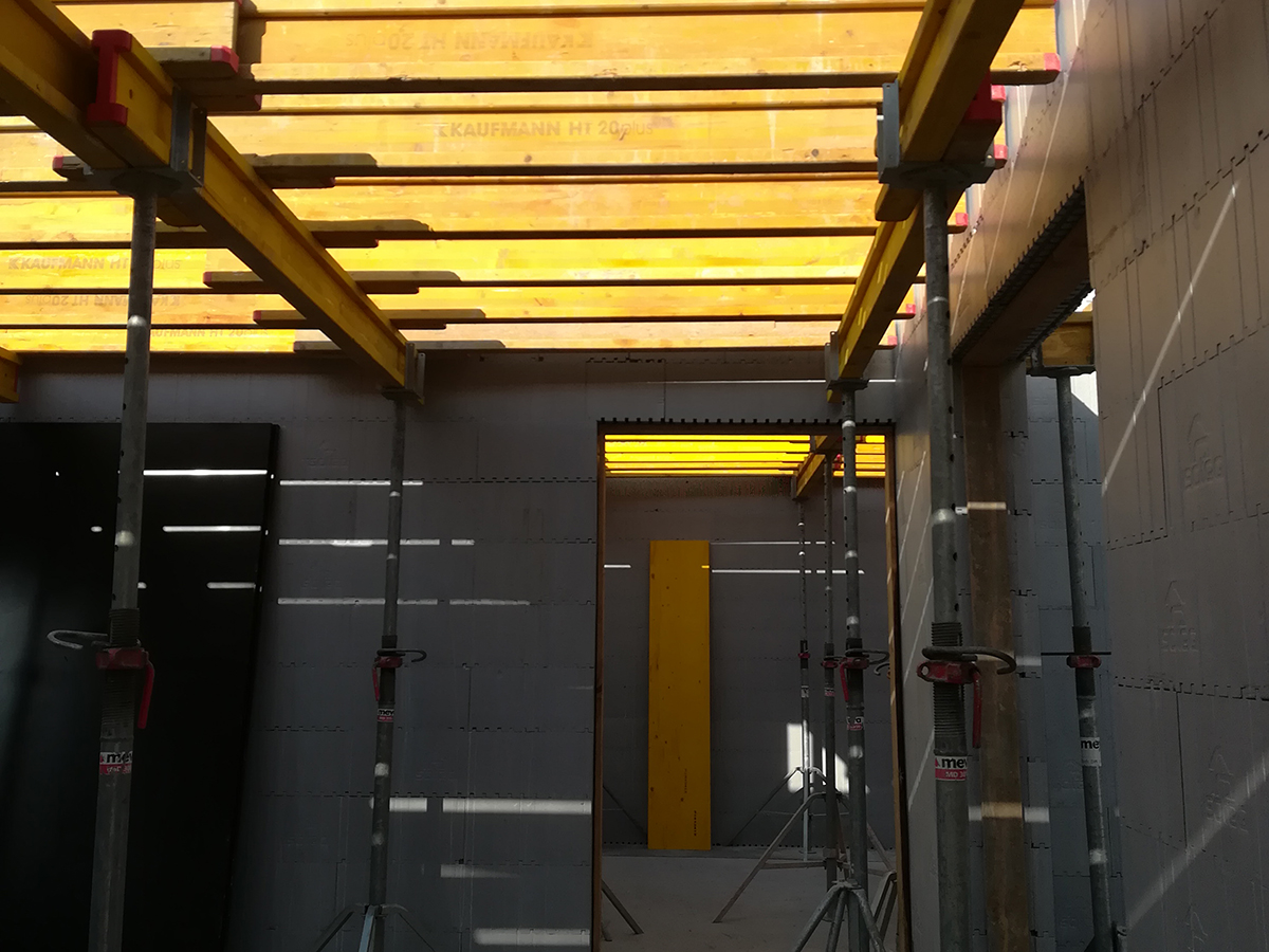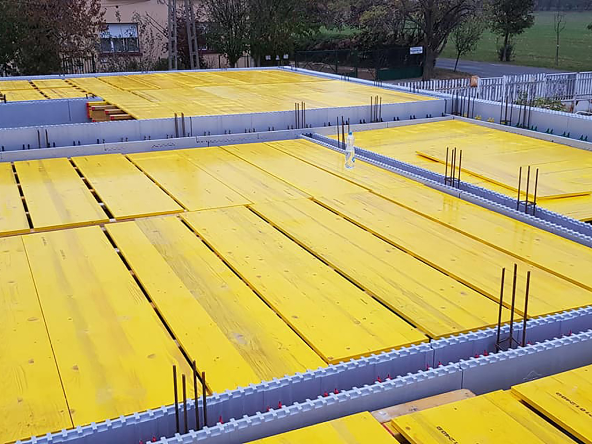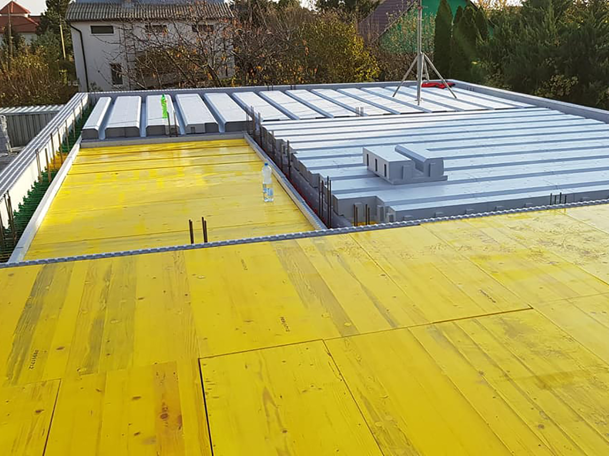 Födémszintre értünk a Budapest XVII. kerületében zajló kivitelezésünk helyszínén: új felvételeinken nagyszerűen bemutatják az IsoteQ PASSZÍV koszorút, ami körülöleli a helyükre kerülő IsoteQ PROFESSIONAL födém idomokat.